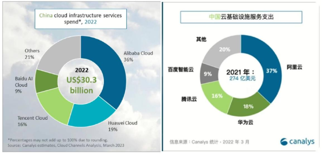 另一部分被市场大力看好的则是阿里的云业务。截至2022年12月31日止三个月,由阿里云及钉钉组成的云业务分部,经调整EBITA为人民币 356 百万元,2021年同期为人民币134百万元。此外,阿里云是还是国内首家盈利的云服务商。据公司财报显示,2021年第三季度阿里云营收达161亿元,调整后EBITA盈利2400万元。2022年,阿里云占中国云市场份额的36%,排名第一,收入为752.97亿元,相比2021年增长了7.6%。在如今AI热火朝天、万物皆上云的时代作为市占率最高的阿里云不可能没机会发展。